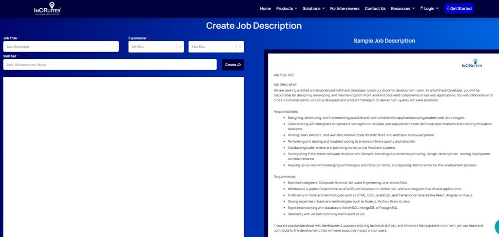 7. InCruiter Free Job Description Generator