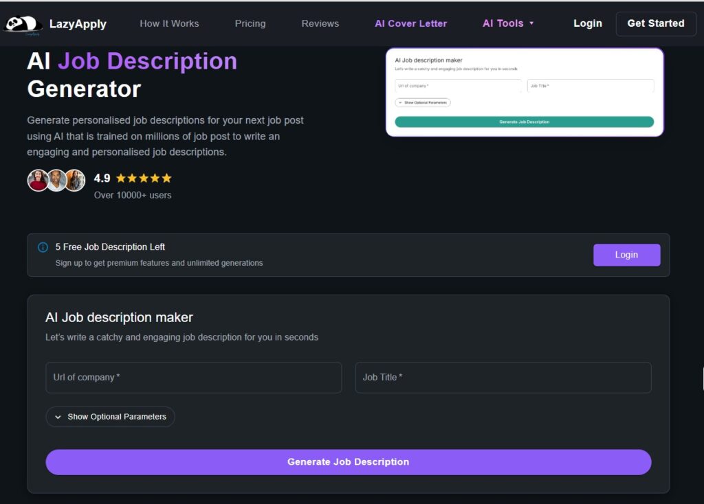 5. LazyApply AI-Powered Job Description Builder